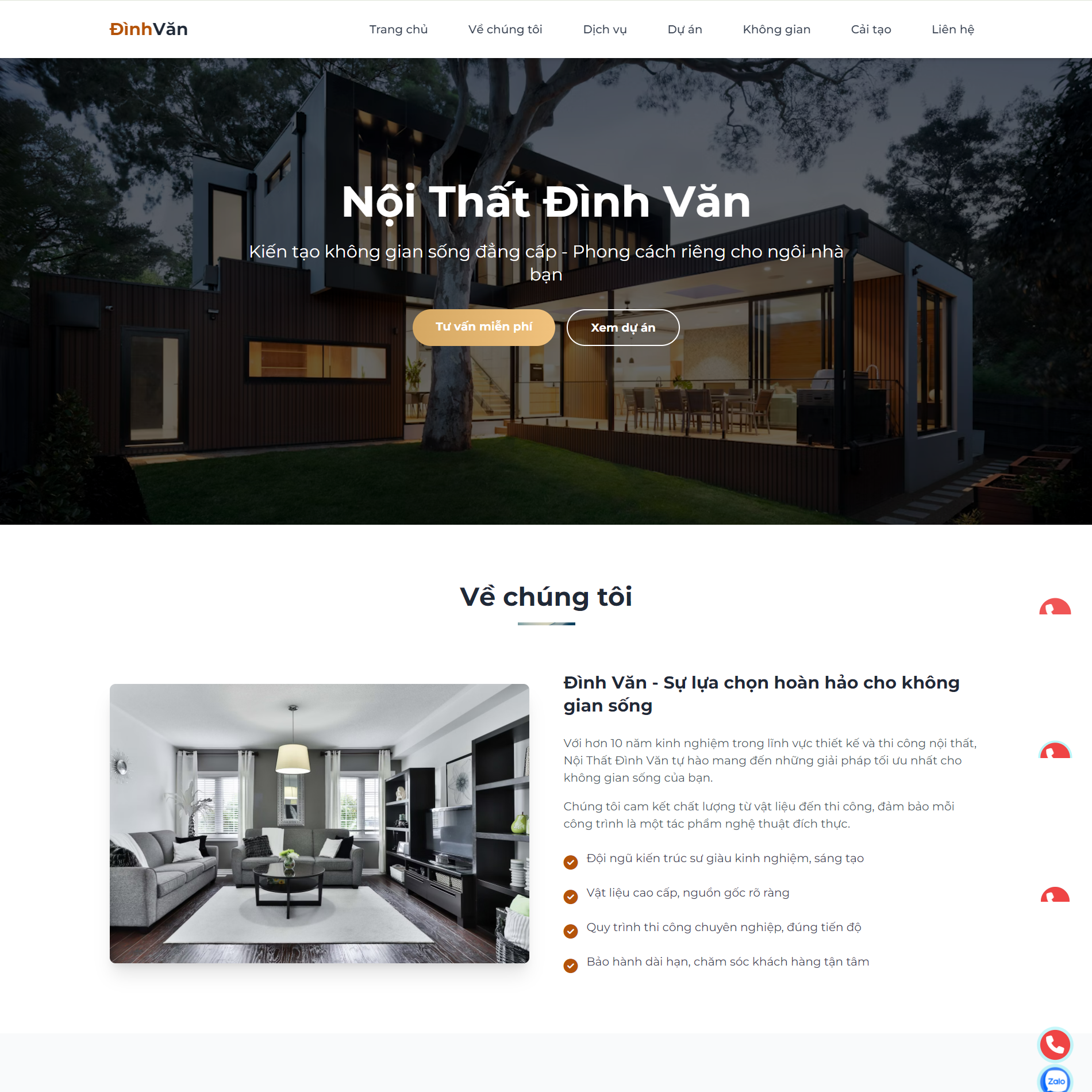 WEBSITE GIỚI THIỆU CÔNG TY NỘI THẤT ĐÌNH VĂN